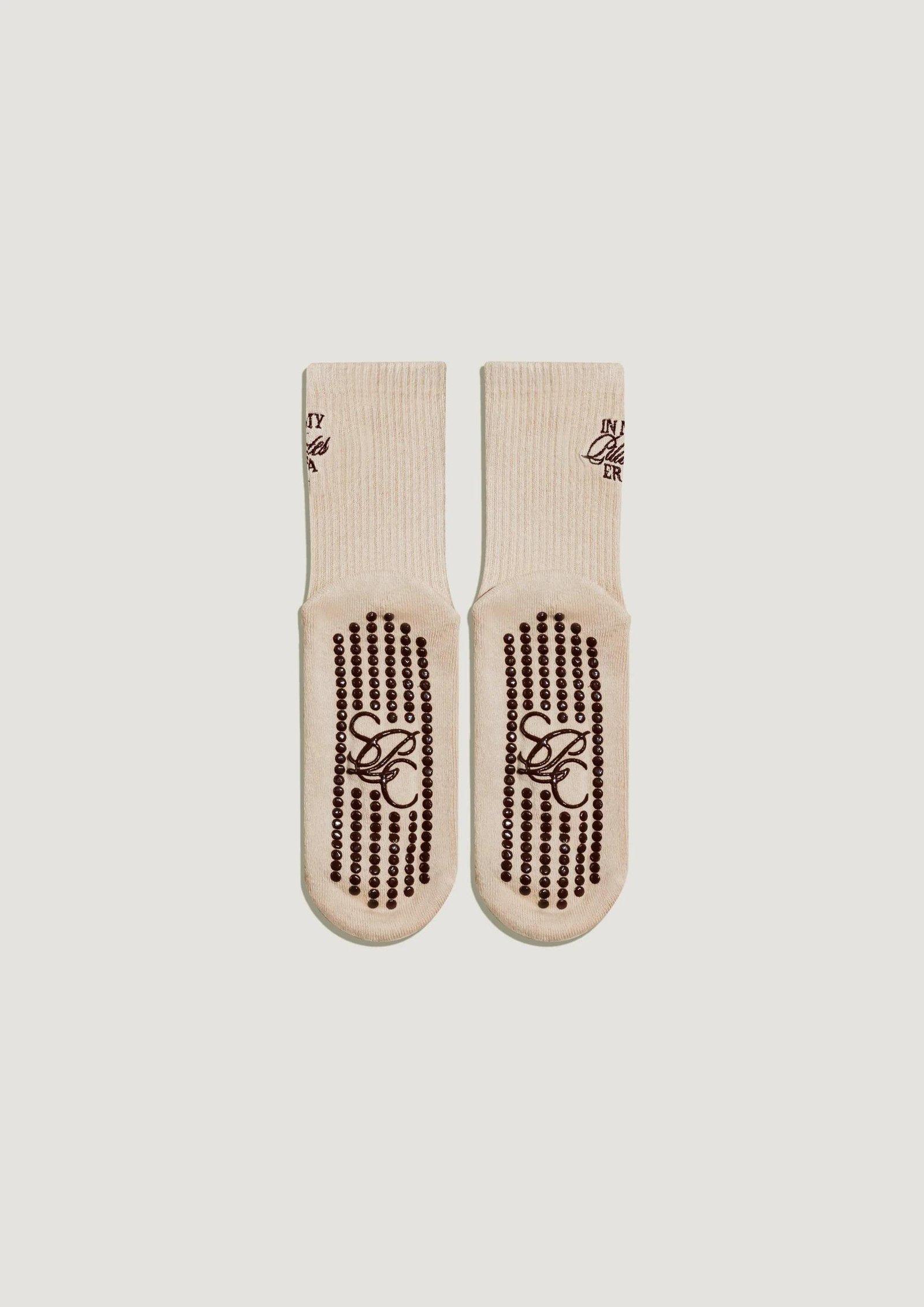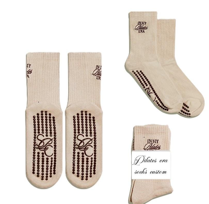 Beige Yoga Pilates Socks Custom Grip Socks Pilates Custom Pilates Socks