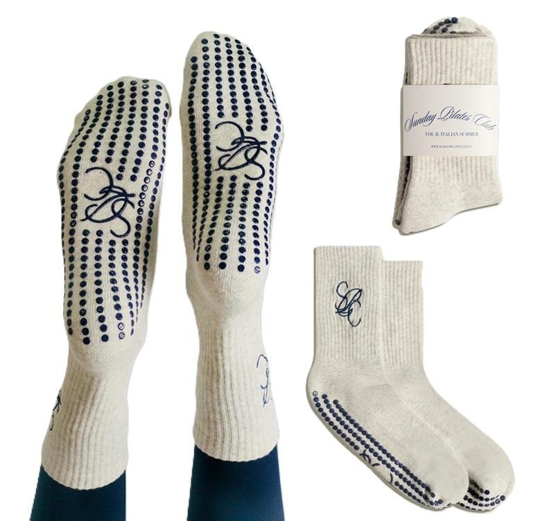 Custom Cute Cotton Beige Yoga Pilates Socks Custom Pilates Socks