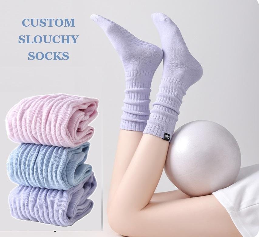 Custom Slouchy Scrunch Grip Socks Cotton Non-slip Grip Pilates Socks Custom