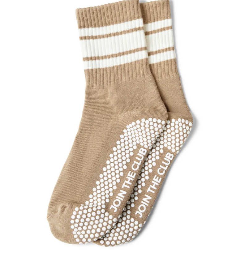 High Quality Retro Crew Grip Socks Toffee Beige Yoga Pilates Socks Custom