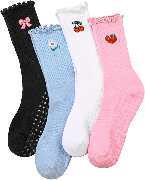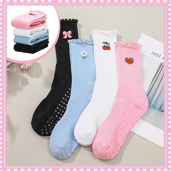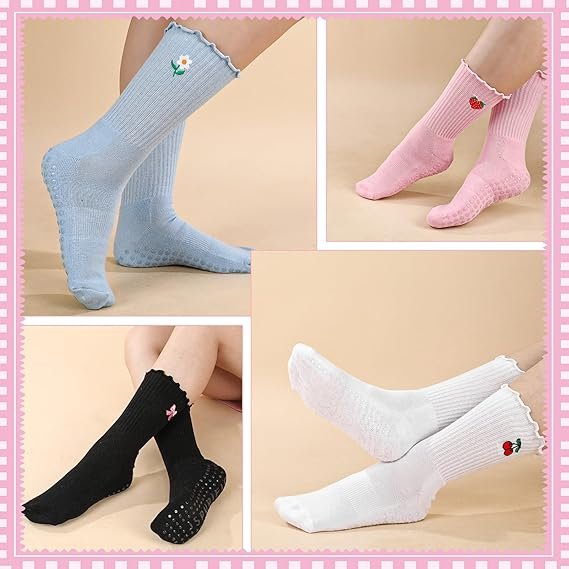 Women Non-Slip Yoga Socks Cute Ruffle Grippy Socks for Pilates